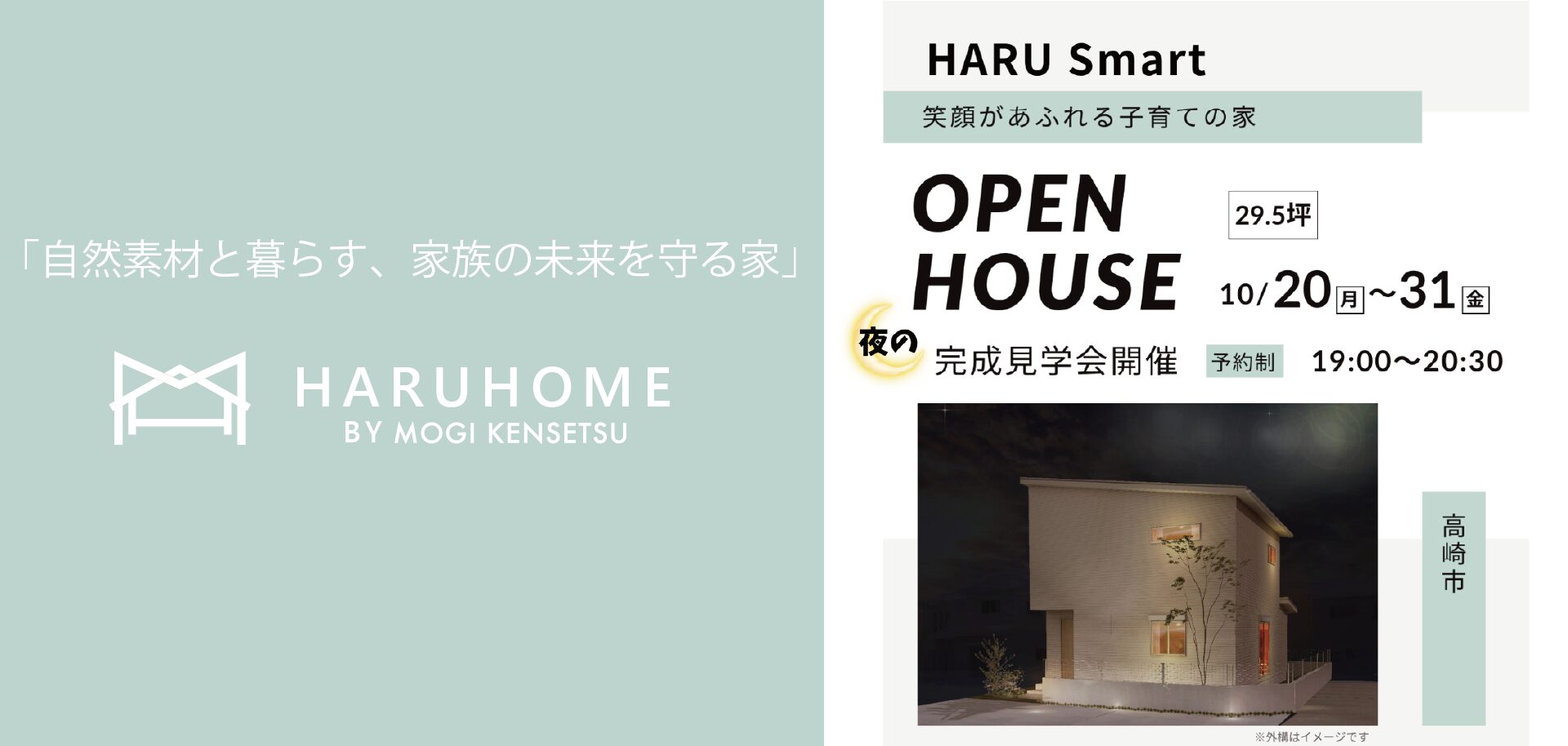 WORKS 良質な自然素材を使った、こだわりのHARUHOMEの施工事例 平屋自然素材店舗新築 カントリースタイルのおしゃれな理髪店 MORE Sunny Side自然素材耐震等級3 回遊動線のある爽やかなカルフォルニアスタイルの家 MORE 暖~はる~平屋自然素材 ブラックと木目がかっこいいコンパクトな平屋 MORE Sunny Side平屋自然素材 海の好きなご夫婦が建てたカルフォルニアスタイルの平屋 MORE 施工事例一覧はこちら NEWS 新着情報 2025.10.18 イベント情報 笑顔があふれる子育ての家 ー夜の完成見学会開催ー 2025.09.24 イベント情報 笑顔があふれる子育ての家 ー完成見学会開催ー 2025.09.20 イベント情報 失敗しない!!家づくり相談会開催中 2025.06.19 イベント情報 HARU Smart建築現場見学会 BLOG ブログ 2025.09.23 秋の夜長を楽しむ、心地よい住まいづくり【藤岡市工務店】 2025.09.14 停電時も安心!太陽光+蓄電池で叶える安心の暮らし【藤岡市・高崎市注文住宅・平屋】 2025.08.13 家族と過ごすお盆【群馬県平屋・藤岡市注文住宅・リフォーム】 2025.08.06 夏の暑さに負けない家づくり【群馬県注文住宅・平屋】 MORE PICK UP 特選記事 【イベント】笑顔があふれる子育ての家 -夜の完成見学会開催ー MORE LINE UP こだわりで建てるHARUHOME3つの商品 商品一覧はこちら 01まもなく始まるVPP社対応スマートハウス 02人生を楽しむ家族のためのお家 03心地よく、暮らしを楽しむ家 CONCEPT 家づくりコンセプト HARUHOMEの家づくり詳しく見る HARUHOMEの保証詳しく見る はじめての家づくり詳しく見る HARUHOMEのリフォーム詳しく見る COMPANY INFO HARUHOMEについて