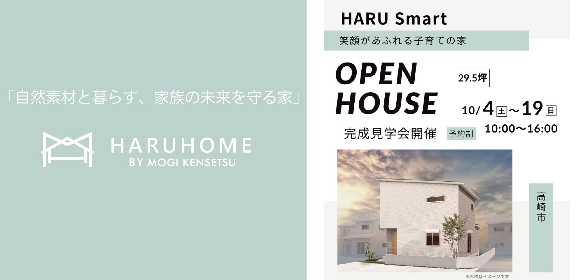 WORKS 良質な自然素材を使った、こだわりのHARUHOMEの施工事例 平屋自然素材店舗新築 カントリースタイルのおしゃれな理髪店 MORE Sunny Side自然素材耐震等級3 回遊動線のある爽やかなカルフォルニアスタイルの家 MORE 暖~はる~平屋自然素材 ブラックと木目がかっこいいコンパクトな平屋 MORE Sunny Side平屋自然素材 海の好きなご夫婦が建てたカルフォルニアスタイルの平屋 MORE 施工事例一覧はこちら NEWS 新着情報 2025.09.24 イベント情報 笑顔があふれる子育ての家 ー完成見学会開催ー 2025.09.20 イベント情報 失敗しない!!家づくり相談会開催中 2025.06.19 イベント情報 HARU Smart建築現場見学会 2025.05.07 イベント情報 HARU Smart 平屋 相談会開催 BLOG ブログ 2025.09.23 秋の夜長を楽しむ、心地よい住まいづくり【藤岡市工務店】 2025.09.14 停電時も安心!太陽光+蓄電池で叶える安心の暮らし【藤岡市・高崎市注文住宅・平屋】 2025.08.13 家族と過ごすお盆【群馬県平屋・藤岡市注文住宅・リフォーム】 2025.08.06 夏の暑さに負けない家づくり【群馬県注文住宅・平屋】 MORE PICK UP 特選記事 【イベント】笑顔があふれる子育ての家 -完成見学会開催ー MORE LINE UP こだわりで建てるHARUHOME3つの商品 商品一覧はこちら 01まもなく始まるVPP社対応スマートハウス 02人生を楽しむ家族のためのお家 03心地よく、暮らしを楽しむ家 CONCEPT 家づくりコンセプト HARUHOMEの家づくり詳しく見る HARUHOMEの保証詳しく見る はじめての家づくり詳しく見る HARUHOMEのリフォーム詳しく見る COMPANY INFO HARUHOMEについて